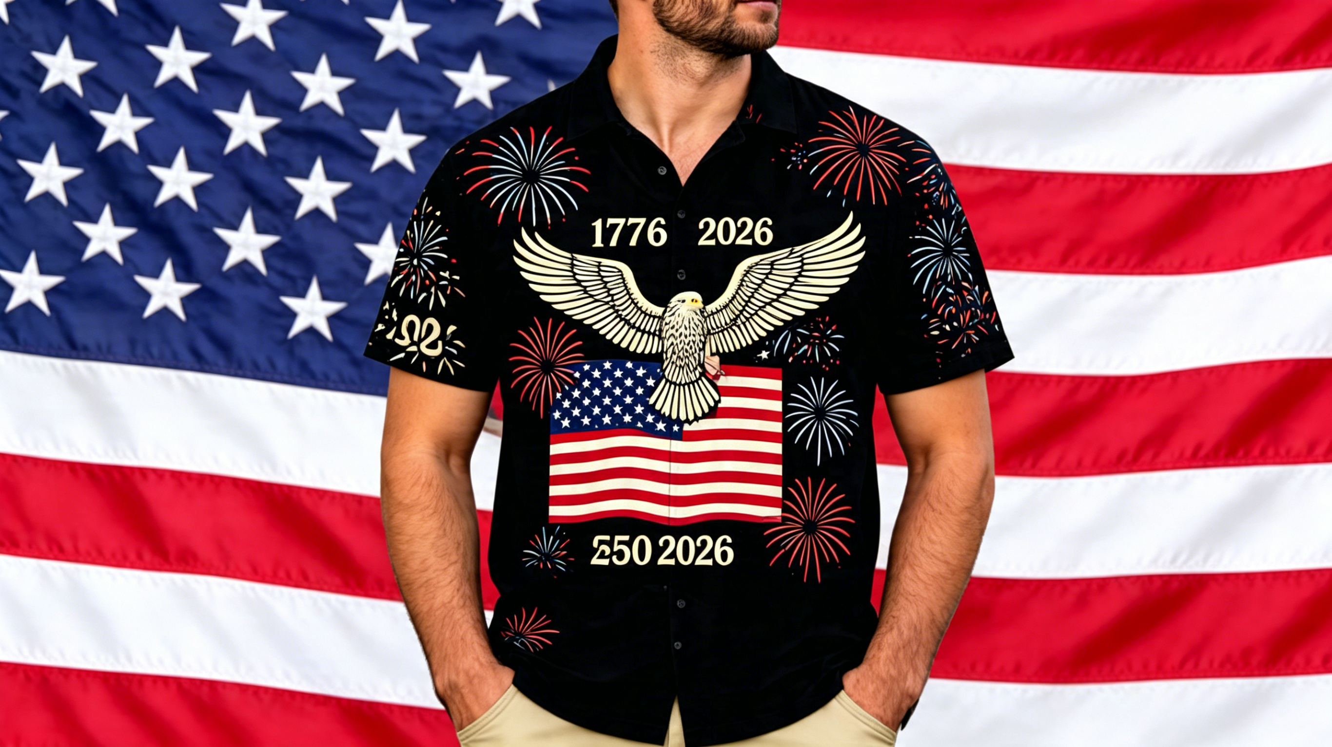 America 250 Hawaiian Shirt 1776-2026, USA 250th Anniversary Shirt, Patriotic Eagle Fireworks Shirt, Independence Day 2026 Outfit